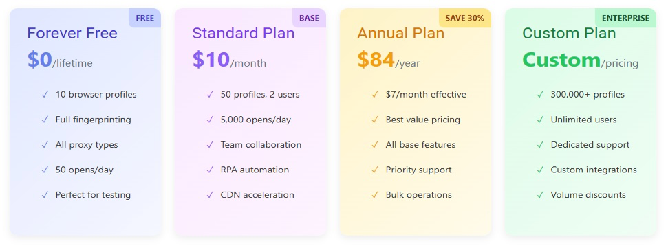 BitBrowser's pricing strategy positions it among the most affordable antidetect browsers available, making professional multi-account management accessible to individuals and businesses of all sizes.